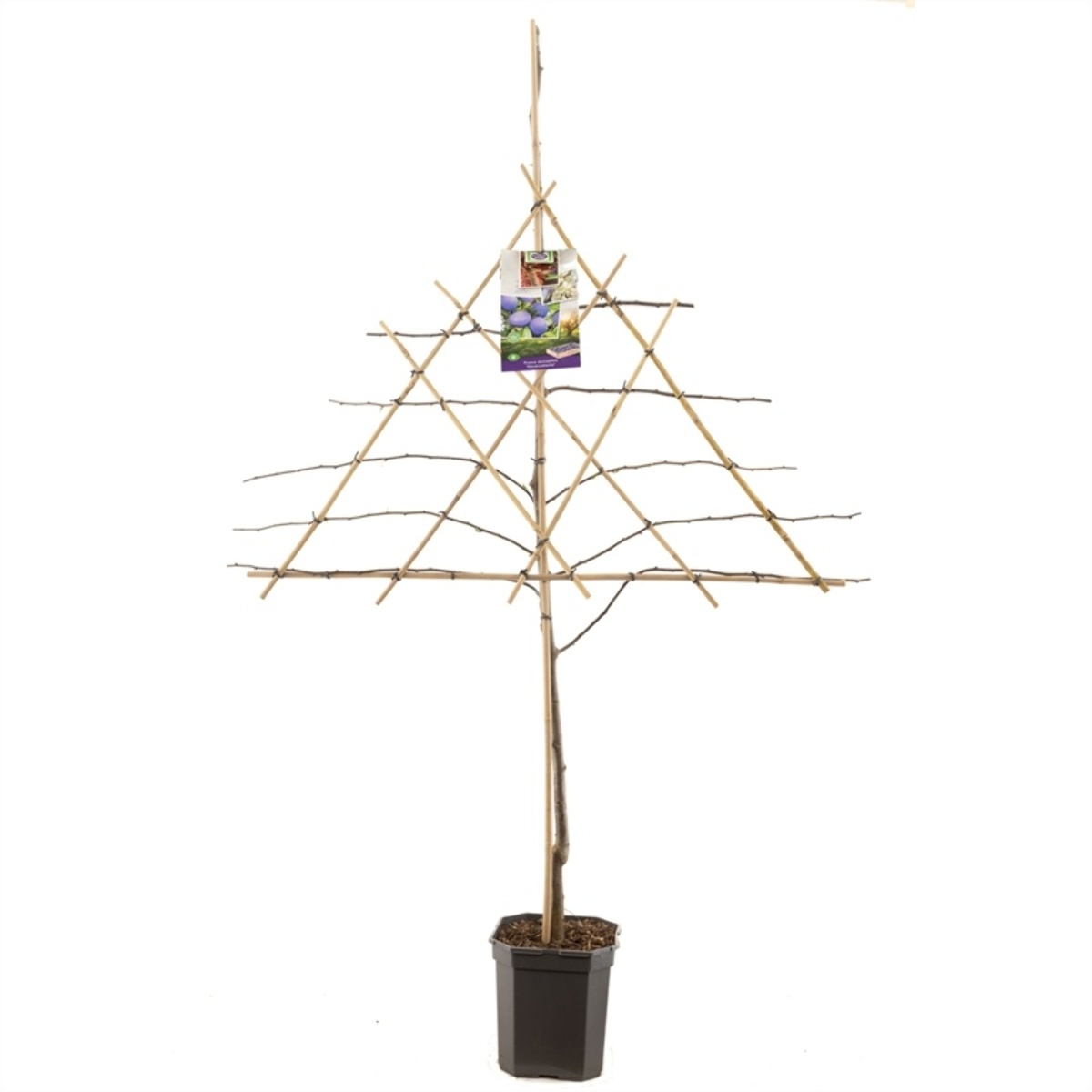 Maak bij het snoeien van de boom, gebruik van de techniek 'vormsnoeien'., Het doel van dit snoeiproces is het , vormen van een mooie, ronde, boomkroon met sterke gesteltakken., Bij een jonge boom zijn het de twijgen, die als toekomstige gesteltakken dienen., Snoei het jonge boompje zo, dat sterke, gesteltakken in een mooie vorm kunnen, groeien. Kies voor 4-6 gesteltakken en, snoei elke verlenging van de , gesteltakken jaarlijks voor de helft in., Zorg dat er voldoende ruimte blijft, tussen de gesteltakken en groeiende, zijtakken zodat er voldoende zonlicht, en ruimte in de kroon komt