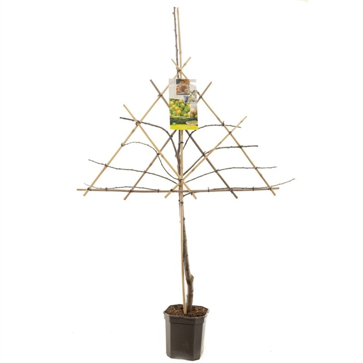 Maak bij het snoeien van de boom, gebruik van de techniek 'vormsnoeien'., Het doel van dit snoeiproces is het , vormen van een mooie, ronde, boomkroon met sterke gesteltakken., Bij een jonge boom zijn het de twijgen, die als toekomstige gesteltakken dienen., Snoei het jonge boompje zo, dat sterke, gesteltakken in een mooie vorm kunnen, groeien. Kies voor 4-6 gesteltakken en, snoei elke verlenging van de , gesteltakken jaarlijks voor de helft in., Zorg dat er voldoende ruimte blijft, tussen de gesteltakken en groeiende, zijtakken zodat er voldoende zonlicht, en ruimte in de kroon komt